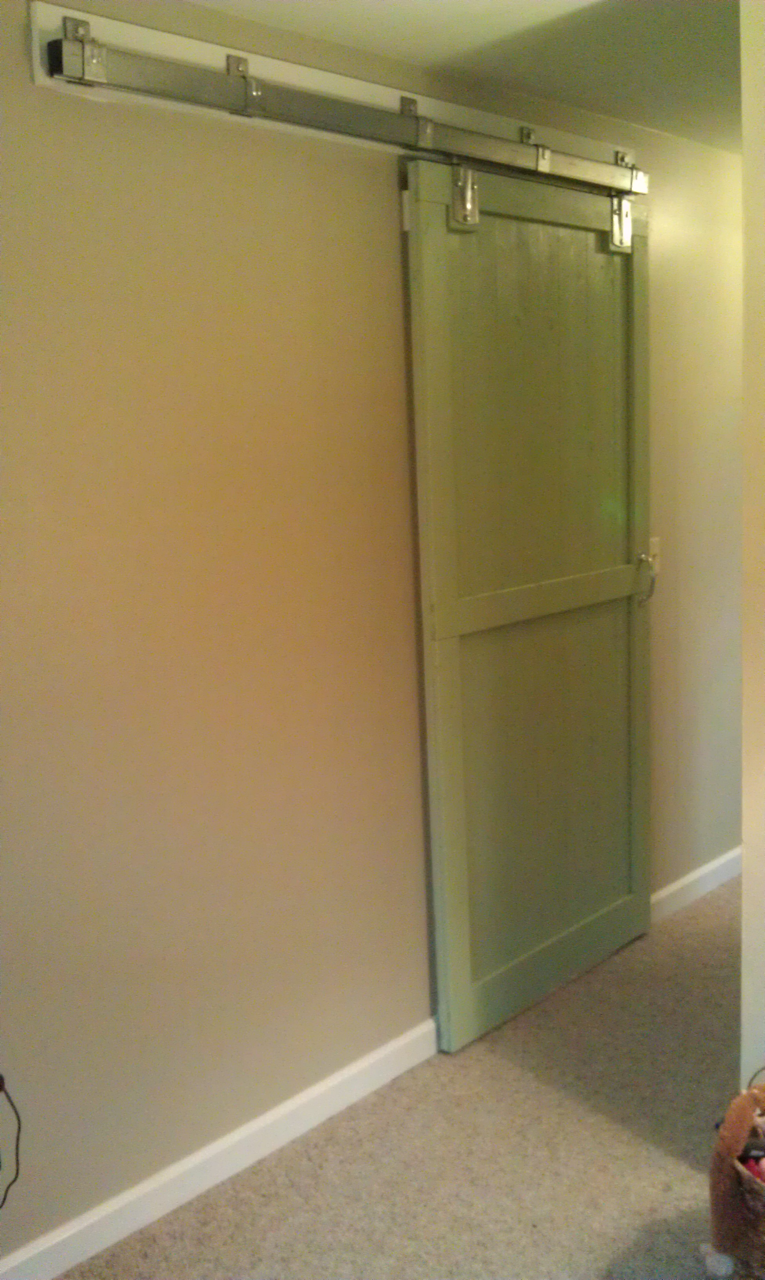 Hi Aleada. My wife and I had similar issues with the cost of “decorative” door hardware. I think the cheapest set we found online was around $400. I ended up returning to my roots and just going out and buying “real” barn door hardware. I bought it at a “Do It Best” hardware store, I’ve also seen it since at an Orscheln. I just checked though and it’s Stanley brand hardware. Google for “Stanley barn door hardware” and you’ll find lots of places to buy it. I can’t remember what I paid but I think it was on the order of $100 for all the hardware, which is definitely better than the decorative hardware. Good luck with the door! — John